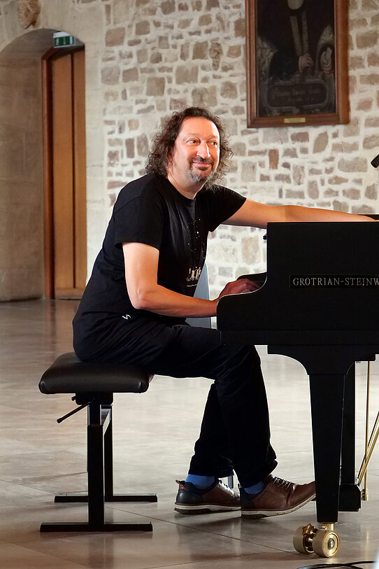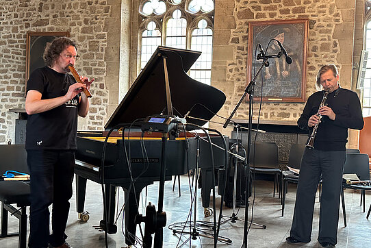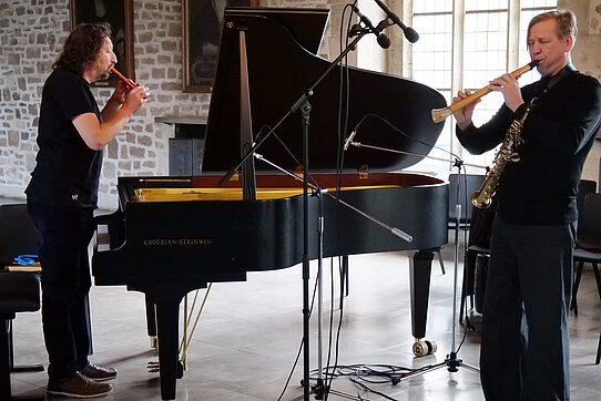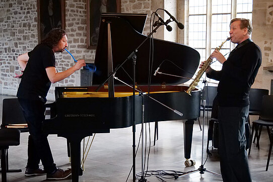 Sonntag, der 12.10 um 11 Uhr: "Freiheit im Augenblick“ Improvisation als Ausdruck von Freiheit und Haltung. Roman Stolyar (Klavier, Berlin/St. Petersburg) und Vlady Bystrov (Klarinetten, Saxophone). Zwei Musiker mit russischen Wurzeln treffen im freien Dialog aufeinander. Ein musikalisches Bekenntnis zu Freiheit, Offenheit und Menschlichkeit. Ein Statement gegen Krieg und Unterdrückung.